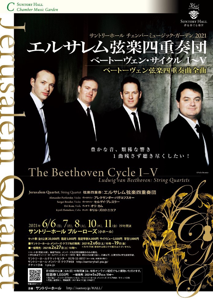 このベートーヴェン弦楽四重奏曲全曲演奏会に、CMGを2011年に開始以来、8つの弦楽四重奏団が取り組んできました。CMG10周年となる記念すべき2021年は、デビュー25周年を迎えるエルサレム弦楽四重奏団が登場します。