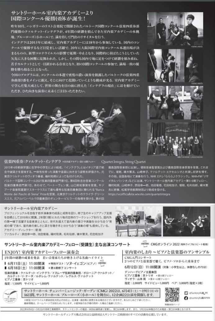 クァルテット・インテグラ リサイタル/ENJOY! 室内楽アカデミー・フェロー演奏会