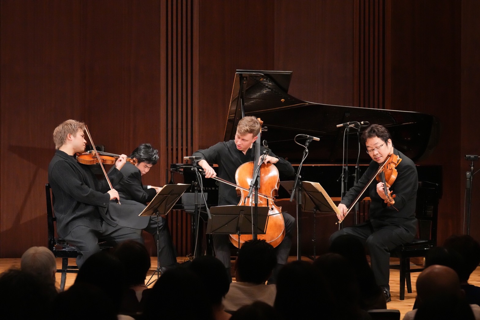 ©飯田耕治 昨年の公演より 辻󠄀井伸行(ピアノ)、三浦文彰(ヴァイオリン)、鈴木康浩(ヴィオラ)、ヨナタン・ローゼマン(チェロ) -