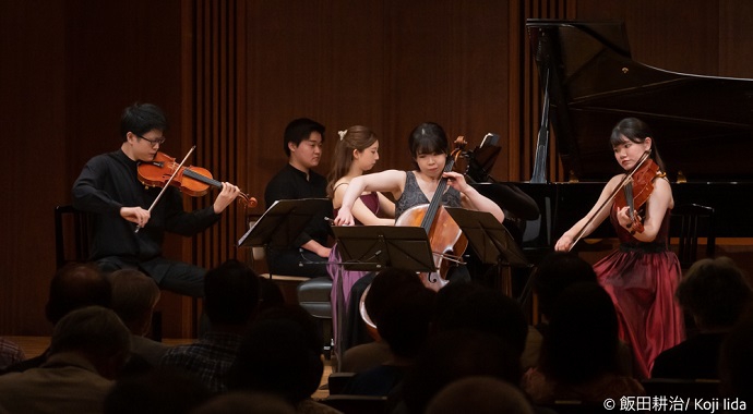 最後は、クレアール・クァルテットの3人にピアノの三浦舞夏が加わり、ブラームスのピアノ四重奏曲第1番第1楽章が披露された。一人ひとりの個性が活きるスケールの大きな演奏であった。