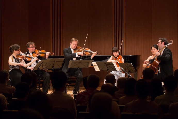 カルミナ・クァルテット:マティーアス・エンデルレ/スザンヌ・フランク(ヴァイオリン)、ウェンディ・チャンプニー(ヴィオラ)、シュテファン・ゲルナー(チェロ)、若林 顕(ピアノ)