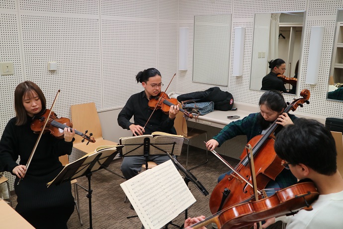パク「日本の方が総じて室内楽をとても大切にしているのがわかって、興味深かったです。というのも、私の知る限り、韓国には室内楽に特化したアカデミーや講義はあまりないですし、ほとんどの人はソロのレパートリーだけに力を入れたがっています。でも日本では多くの学生たちが室内楽にすごく真剣に取り組んでいます。また、楽しむだけでなく、真剣に室内楽に向き合おうと長い時間をかけて努力する姿に感銘を受けました。誰もが、もちろん楽しんでもいましたが、それ以上に真面目に頑張っていました。インテグラがかつて学んでいたのと同じ環境にいるアカデミー生たちと演奏できて良かったです。アカデミー生からも強い敬意が感じられました。そうですね、リハーサルではお互い心から敬意を払っていましたし、どちらかが一方的に演奏を教えるのではなく、ともに音楽に向き合おうとしていました。2つのグループが一体となって演奏しようとするチームワークはかなりうまくいったと思います」