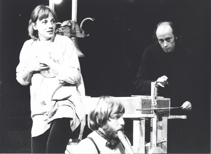 スコブは映画と演劇でキャリアを積むかたわら、アペルギスとともに、音、言葉、身ぶりを使った即興の技術を開拓するパフォーマーの小集団に属していた。それが1976年、パリ近郊の貧しい地区、バニョレに[アペルギスの主導によって]設立された「演劇と音楽のアトリエ(ATEM)」である。この即興の取り組みが目ざしていたのは、社会的な性質をもつ独自のプロダクション、地域の住民が臨席・参加し、そのテーマの決定に関与する劇だった。アペルギスは1971年のアヴィニョン演劇祭において、音楽を伴う舞台作品『降霊術師イエロニモとその鏡の悲話』で最初の大きな成功を収めていたが、こうした即興の作業を通して、舞台作品への取り組みをさらに進めることが可能となったのだ。音楽と演劇の境界線に位置する即興のワークショップが毎週、何年にもわたって続けられた結果、1976年に結成されたこのパフォーマーのささやかな共同体は、一種の実験的ミュージック・シアター劇団へと成長を遂げ、その領域横断的な名人芸は高く評価された。