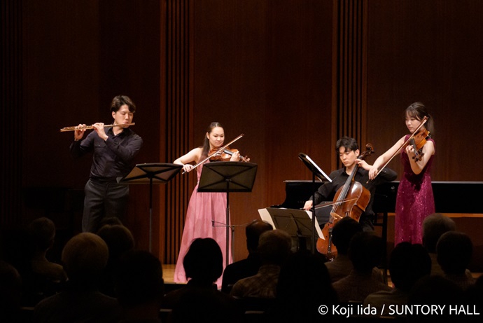 また、サントリーホール室内楽アカデミーの活動にフェローとして参加する団体もあった。11月には、サントリーホール アカデミーの協賛会社であるヤマヒロ株式会社のLegare三鷹店でのコンサートにカルテット・プリマヴェーラが出演。2025年2月には、5つの文化施設(東京文化会館、東京芸術劇場、ほか)が支援する若手アーティストたちによる東京文化会館小ホールでの「アフタヌーン・コンサート」に、サントリーホール室内楽アカデミーを代表して、カルテット・ルーチェが出演し、ベートーヴェンの弦楽四重奏曲第10番「ハープ」より第1、3、4楽章を弾いた。そして、7月には、サントリーホールの地元である、東京都港区の赤坂区民センターの主催する「赤坂ふれあいコンサート」にトリオ・フィデーリスが出演し、ショスタコーヴィチのピアノ三重奏曲第1番、シューマンのピアノ三重奏曲第2番などのプログラムを披露した。