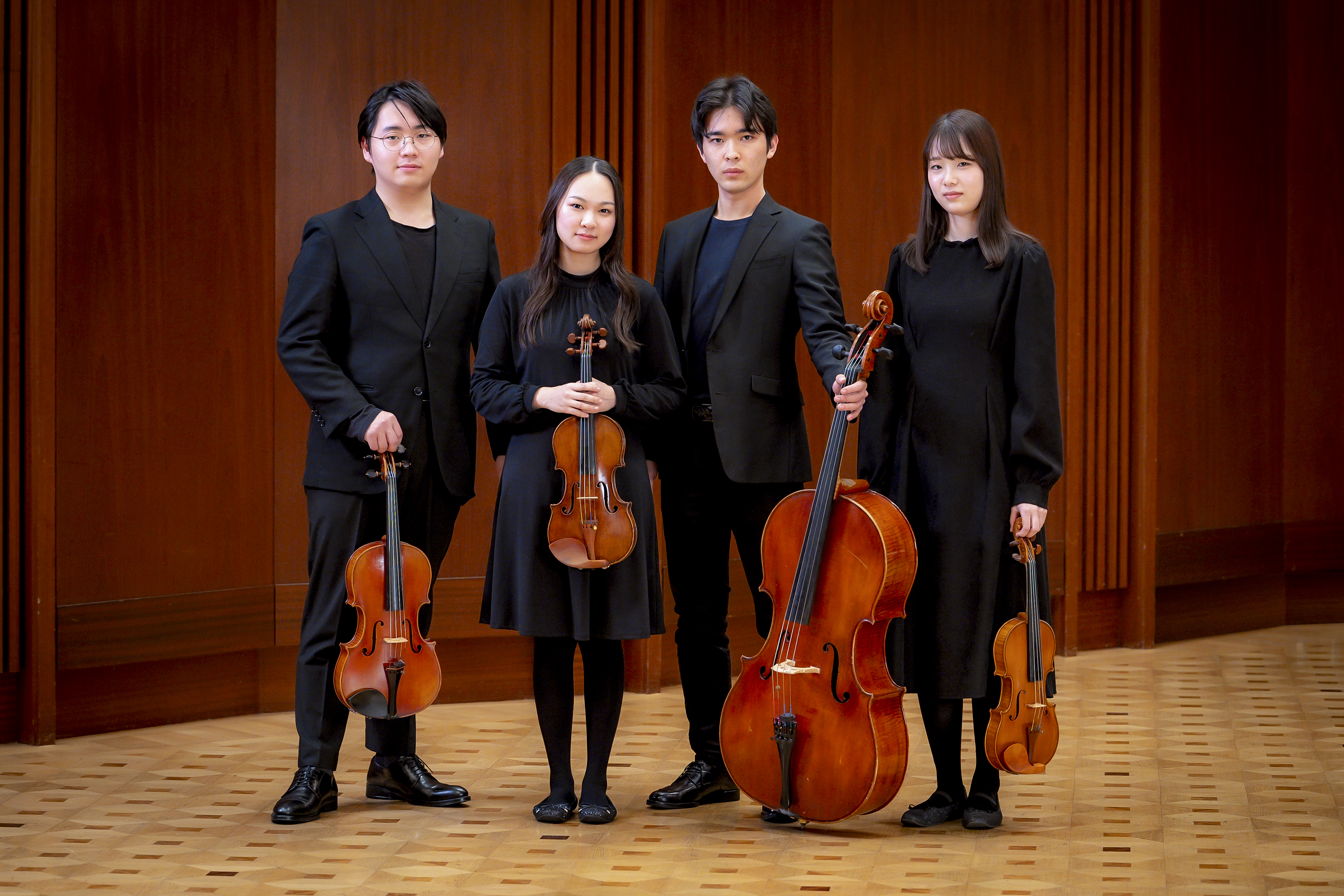 第1ヴァイオリンの高麗は、第14回ヴィエニャフスキ国際ヴァイオリンコンクールのジュニア部門で第3位入賞。2025年には第94回日本音楽コンクールで第4位に入賞。これからの活躍が大いに期待されているヴァイオリニストである。チェロの宮之原は2024年の第78回全日本学生音楽コンクール全国大会で第1位を獲得している。