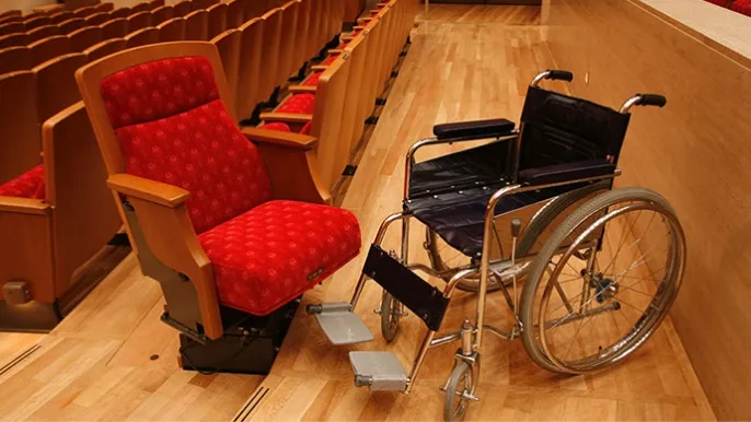 大ホール、ブルーローズ(小ホール)とも、車椅子のままお聴きいただける席があります。
