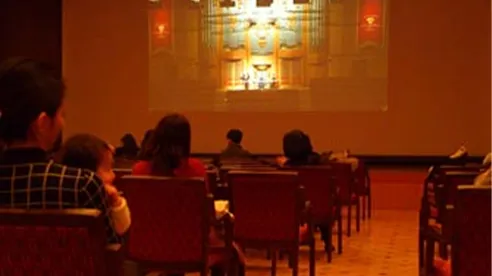 客席は可動式。舞台は7つに分かれたセリで構成され、それぞれが20cm刻みで最高60cmまで上下します。フロアも演奏者がすぐ傍に感じられる広さ。このため、自由な発想で、新しい音楽空間を演出することが可能です。演奏会の他、講演会などにも利用できます。