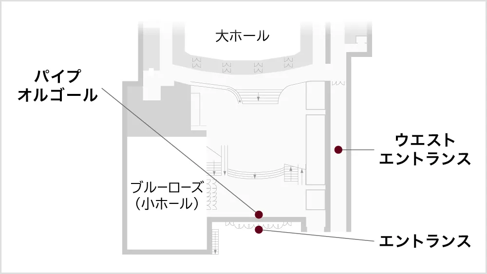 音調室/調光室/舞台操作室/中継録音室/撮影室/クローク/ショップ/ドリンクコーナー