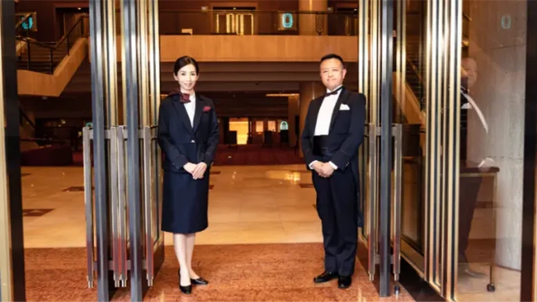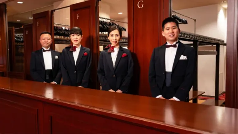 開場時間にはレセプショニストが扉を開けて、ホールの中へとお客様をお迎えします。
