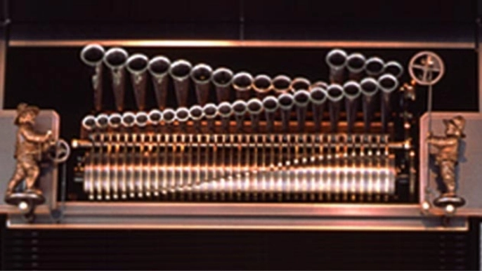 サントリーホール正面入口の上壁には、パイプオルゴールが仕込まれています。正午のほか、開場時になると、壁が開いてぶどう畑の番人を表わした老人と少年の人形がオルゴールを回します。このオルゴールは、大ホールに設置されたオルガンと同じ素材で作られた37本のパイプから音が生まれます。
