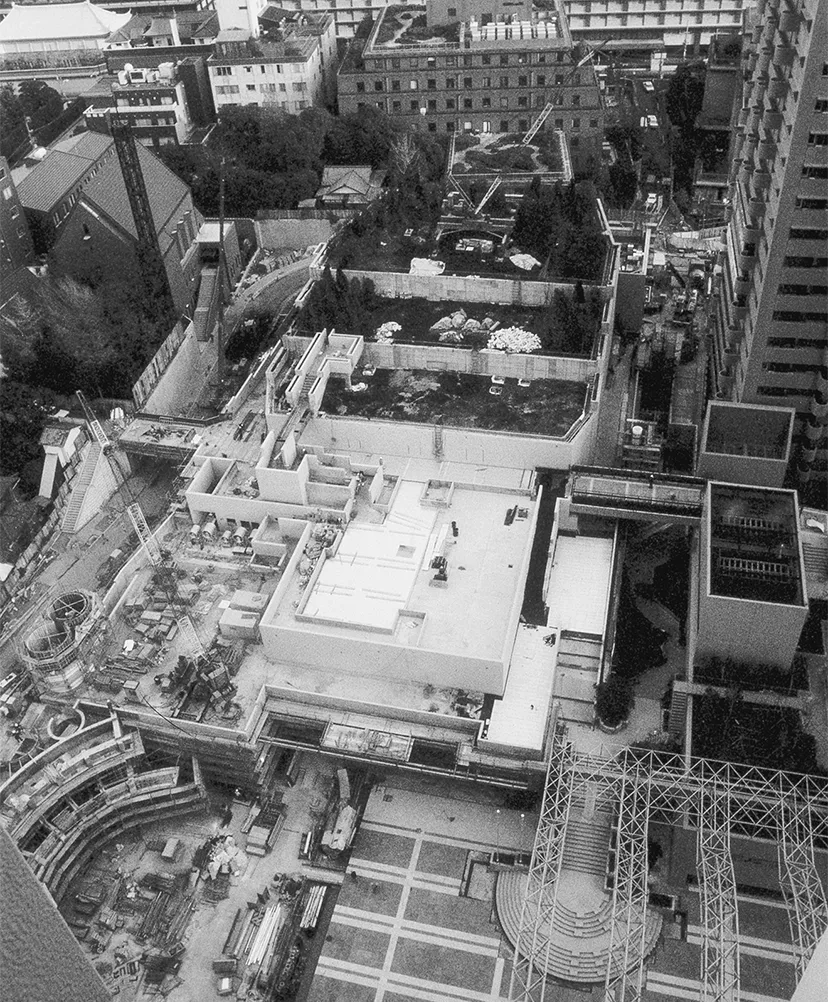 世界最高峰のホールを作り、コンサートを楽しむ文化そのものを広めていきたいーーその夢は、東京都の赤坂・六本木地区再開発計画のなかで、森ビルが構想した大規模複合施設「アークヒルズ」で実現しました。広場(後にアーク・カラヤン広場と命名)を中心に、オフィス棟、住宅棟、ホテルや文化施設が建ち並び、豊かな緑地も備えた、新しいライフスタイルを提案する街。そこで、サントリーが文化施設を作ることになったのです。