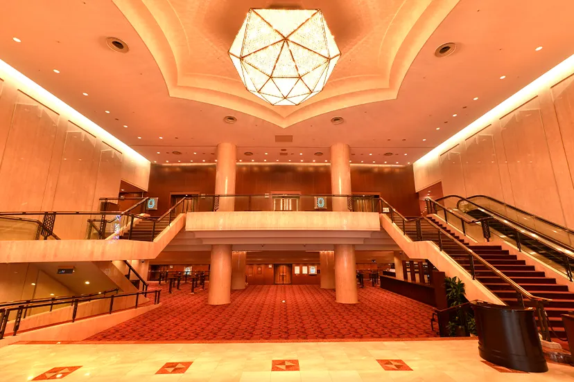最高の音楽体験の場であるとともに、コンサートを楽しむ文化そのものを根づかせたいと、雰囲気づくりの細部にまでこだわりました。大きなシャンデリア、壁画やステンドグラスなどのアート作品、赤い絨毯が広がる華やかなホワイエ。お客様に快い時間を過ごしていただくために、ご案内専門職のレセプショニストや、クロークのサービスを配し、お酒も提供するドリンクコーナーを設けたことも、日本のコンサートホールでは初めての試みでした。開演前や休憩のひととき、コンサート後の余韻まで含め、大人の社交場としての新たな空間価値を創造したのです。