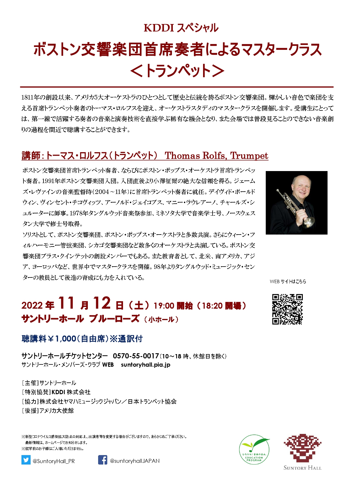ボストン交響楽団首席奏者によるマスタークラス【トランペット】