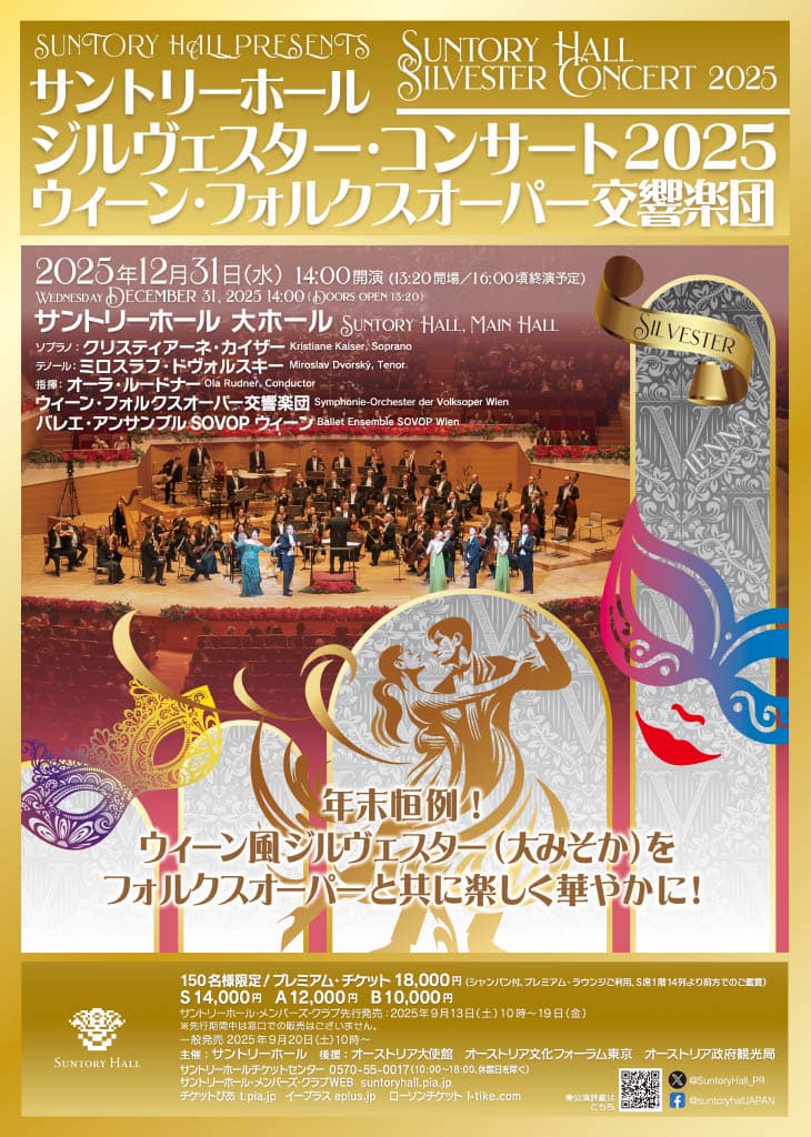 ウィーン・フォルクスオーパー交響楽団(SOVOP)は、オペレッタの殿堂「ウィーン・フォルクスオーパー」の歌劇場専属オーケストラ「ウィーン・フォルクスオーパー楽団協会」として1917年に設立。ウィーン縁の作曲家、シュトラウス一家、レハール、スッペなどのオペレッタ、ワルツ、ポルカは彼らの十八番であり、本拠地ウィーンの伝統と歴史を継承する正統派として聴衆を魅了し続けている。日本では、1994年以来東京・名古屋・大阪を中心にウィーンらしい演出とプログラムによる「ジルヴェスター・コンサート」「ニューイヤー・コンサート」を継続的に開催し、幅広い世代から親しまれている。