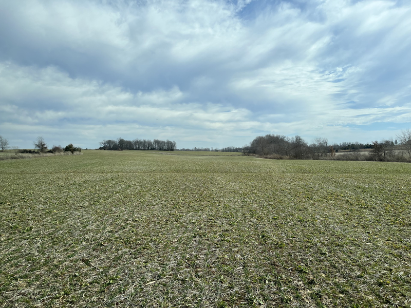 アメリカ・ケンタッキー州にあるカバークロップ(被覆作物)で覆われた実証実験中のトウモロコシ農園。
