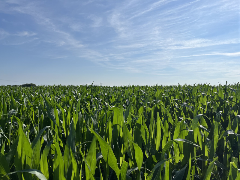 再生農業の実証実験を行っている農園では、トウモロコシがすくすくと育っています。