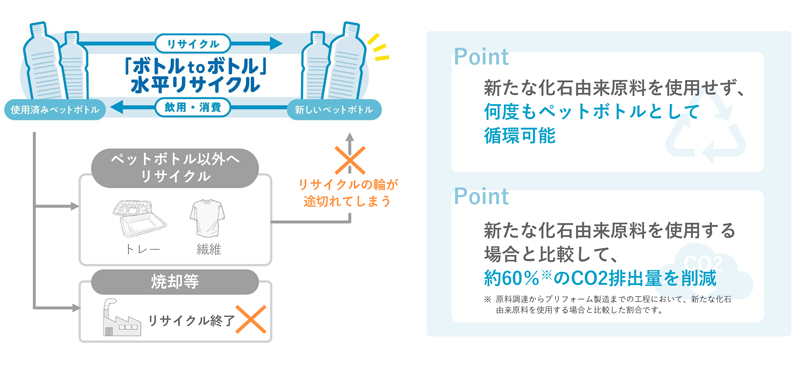 使用済みペットボトルから新たなペットボトルをつくる“水平リサイクル”