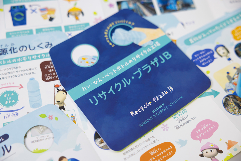 リサイクル・プラザJBで配布しているパンフレット。缶・びん・ペットボトルのリサイクルフローやペットボトルの再資源化の仕組みを紹介しています。