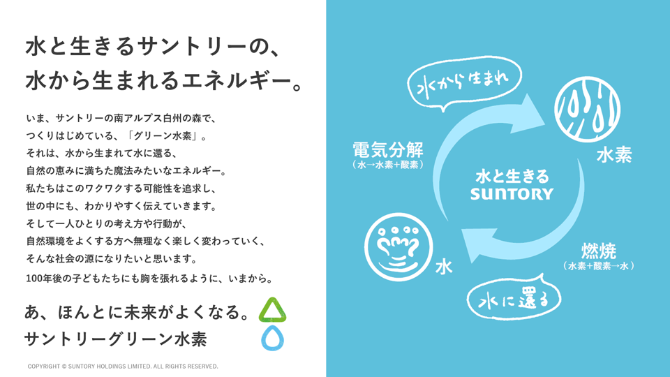 サントリーが挑む「水から生まれて、水に還る」エネルギーの製造