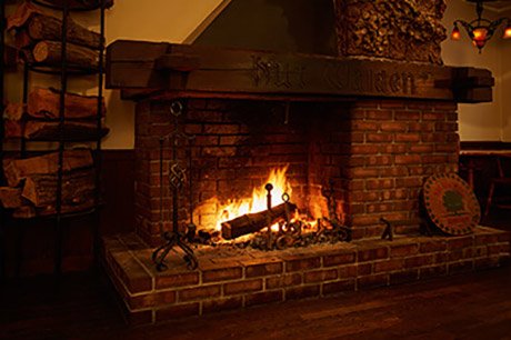 レンガ造りの重厚感あふれる暖炉が上質な空間を演出していました。