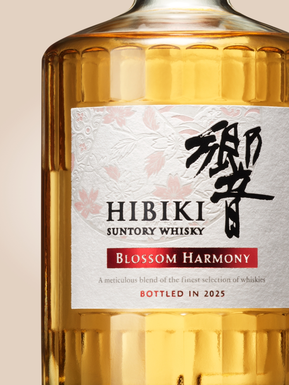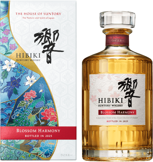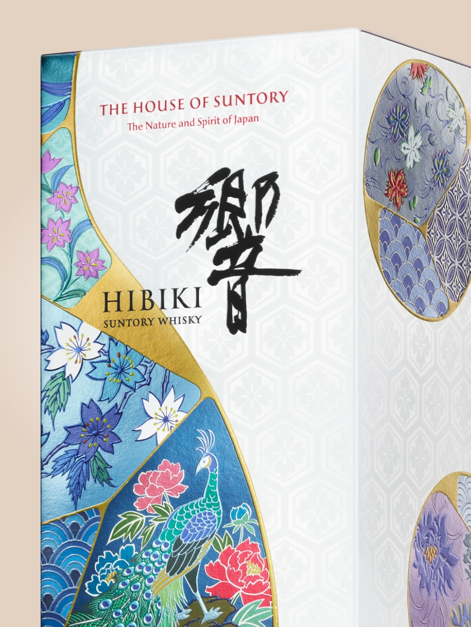 「響 BLOSSOM HARMONY 2025」は、異なる器の破片を金で継ぎ合わせる技法「呼継ぎ」に着想を得た酒器のデザインが特徴。多彩な文様を組み合わせて新たな美を見出す精神は、一つ一つの原酒の個性が美しく調和した「響」と共鳴します。
