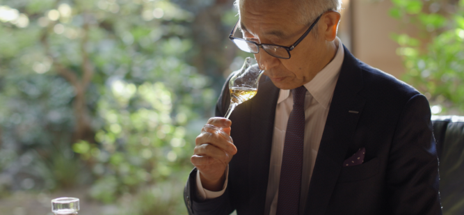 幾度もの四季を経て個性を深めた多彩な原酒に、桜樽で後熟させた希少な長期熟成グレーン原酒を