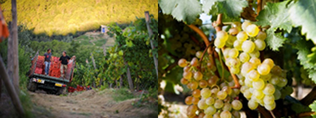 写真:(右)ヴェルメンティーノ(左)急斜面のリグーリアのヴェルメンティーノの畑