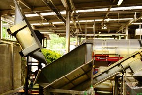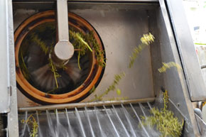 そして、ぶどうは、ホッパーのスクリューコンベアで少しずつ「除梗機」に投入されます。