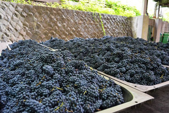登美の丘ワイナリーは、好天に恵まれたシルバーウイーク中もぶどうの収穫・仕込みで全ての機能がフル稼働でした。このシルバーウイークで収穫したビジュノワールは、素晴らしくいい状態の果実でした。