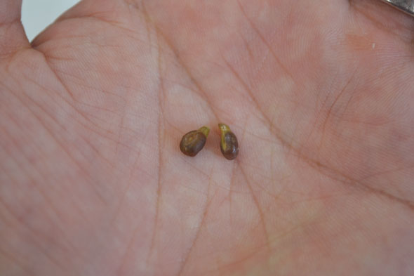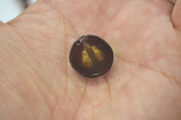 ぶどうの小さな実を切ると、中にはしっかりと種があります。