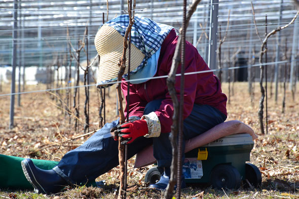 黙々とただひたすらにぶどう樹のお世話をしてあげているというオーラがにじみ出ています。