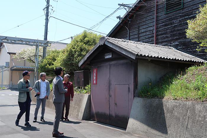出迎えてくれた塩尻ワイナリーの篠田所長に導かれ、早速、このワイナリーの歴史を物語るような施設へ。そしてなんと、今回はスペシャルゲストも御一緒!皆さまご存知、お笑いコンビ「髭男爵」のひぐち君こと、ひぐち君さん(ここからは‘樋口さん’と呼ばせていただきますね。)樋口さんは、日本ワインに深く精通され、その知識と経験も卓越しています。日本全国を巡り、日本ワインのプロモーションに一役も二役も買っていらっしゃる存在です。