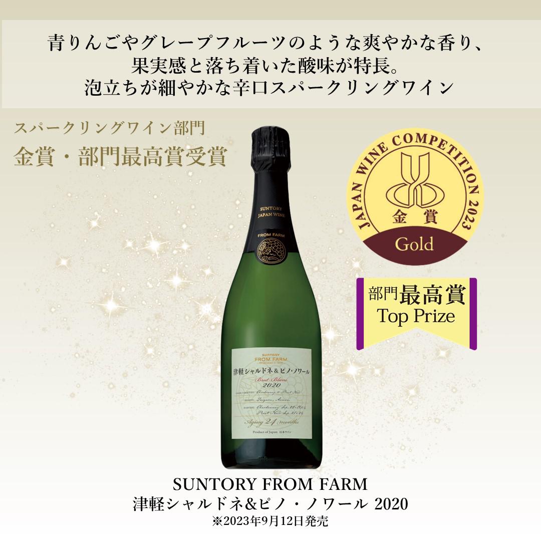 そしてもう1つ金賞及び部門最高賞を受賞した「サントリーフロムファーム 津軽 シャルドネ&ピノ・ノワールスパークリング 2020 グリーンエティケット」。日本ワインのスパークリングワインのポテンシャルの高さをじっくりと味わうことができるワインです。りんごのイメージが強い青森県津軽で栽培された、シャルドネとピノ・ノワールを使用し、いわゆる伝統的なシャンパーニュと同じ製法(瓶内二次醗酵)でつくられる本格的な味わいのスパークリングワイン。高品質なワインを証明する瓶内二次醗酵特有のフレッシュさ、複雑性、そしてエレガンスさを備えたワイン。津軽らしい、りんごのアロマに包まれる唯一無二のスパークリングワインです。