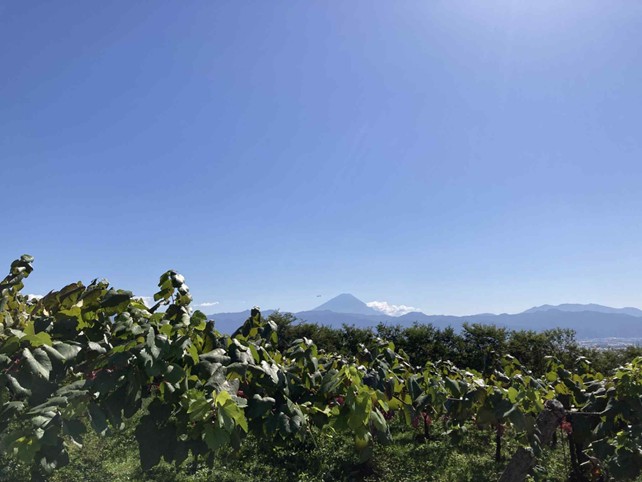 一面に紫色のたわわに実った甲州が棚仕立ての畑の中に広がり、まさに実りの秋を感じさせます。