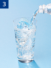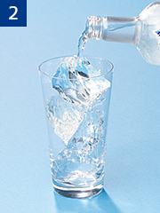 きりっと冷えたソーダを氷にあてないように注ぐ